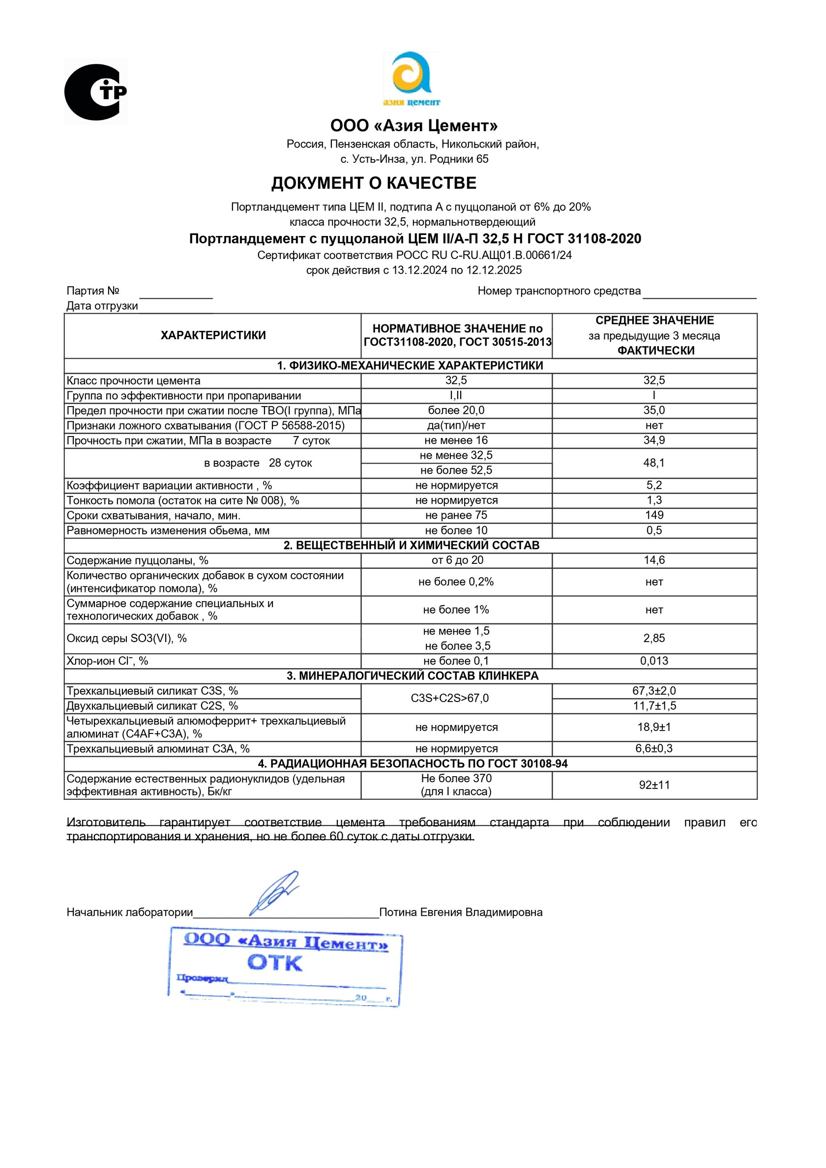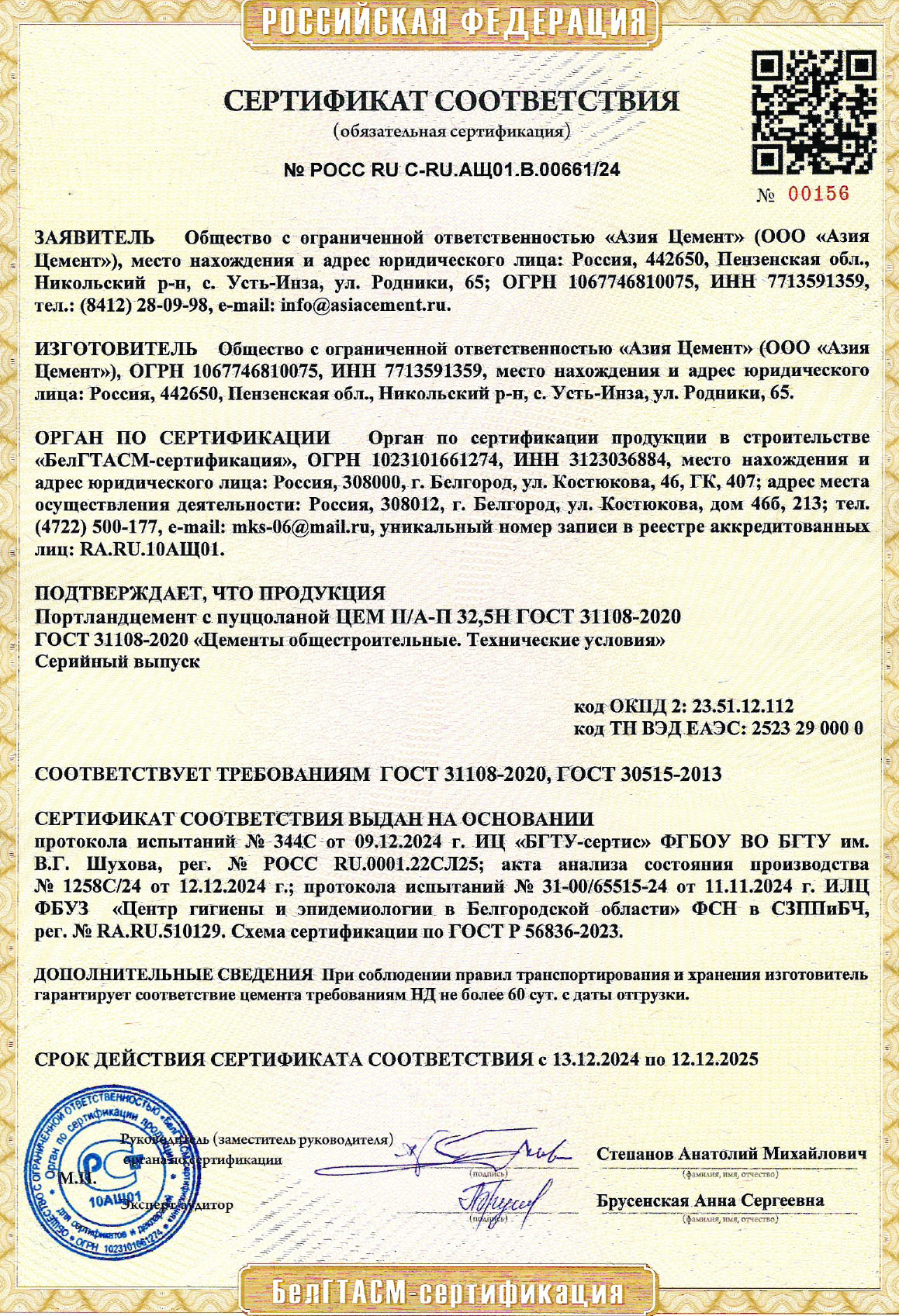 ЦЕМ II/А-П 32,5Н ГОСТ 31108-2020