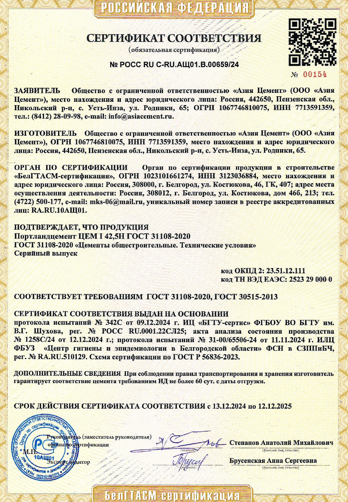 ЦЕМ I 42,5Н ГОСТ 31108-2020
