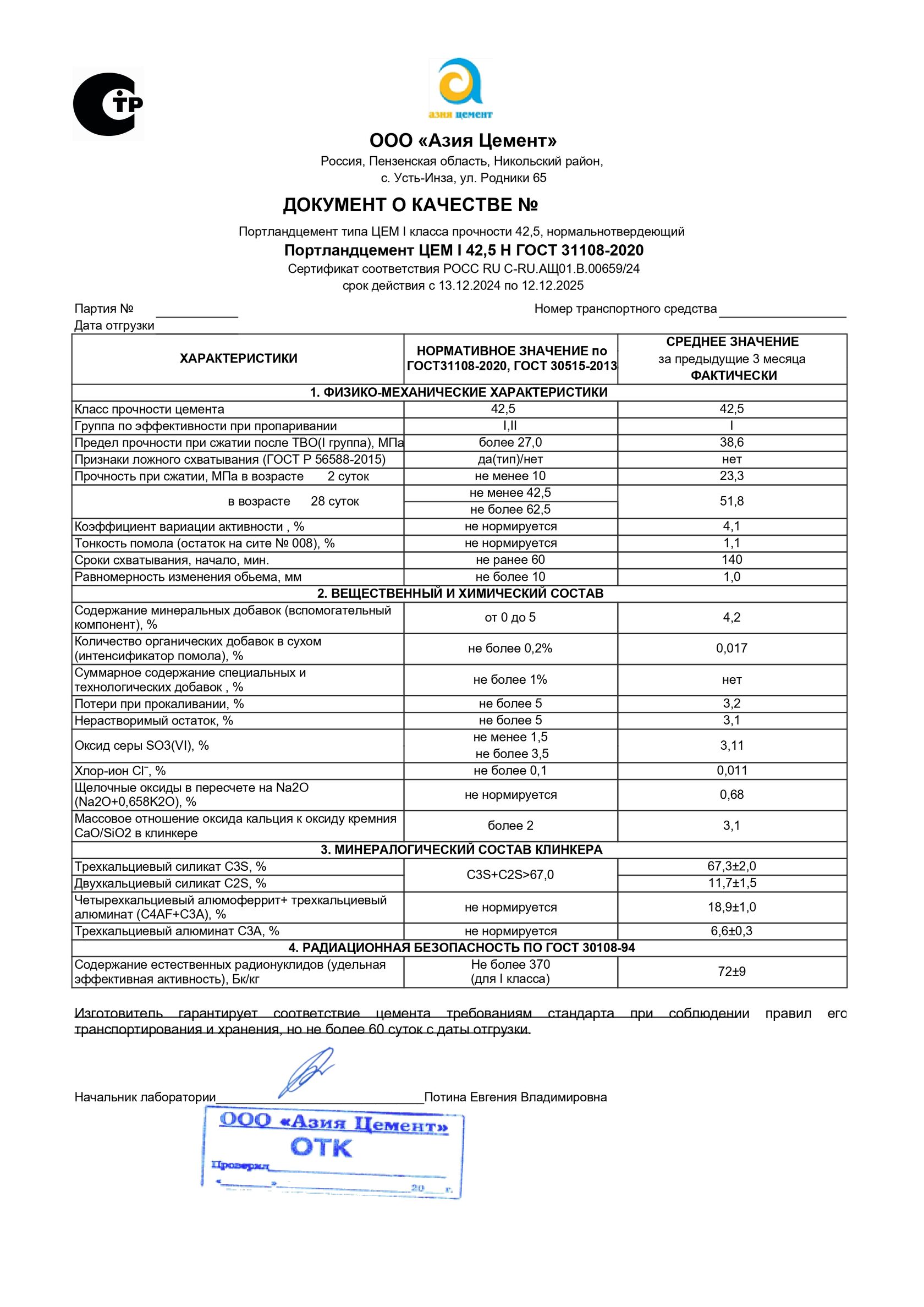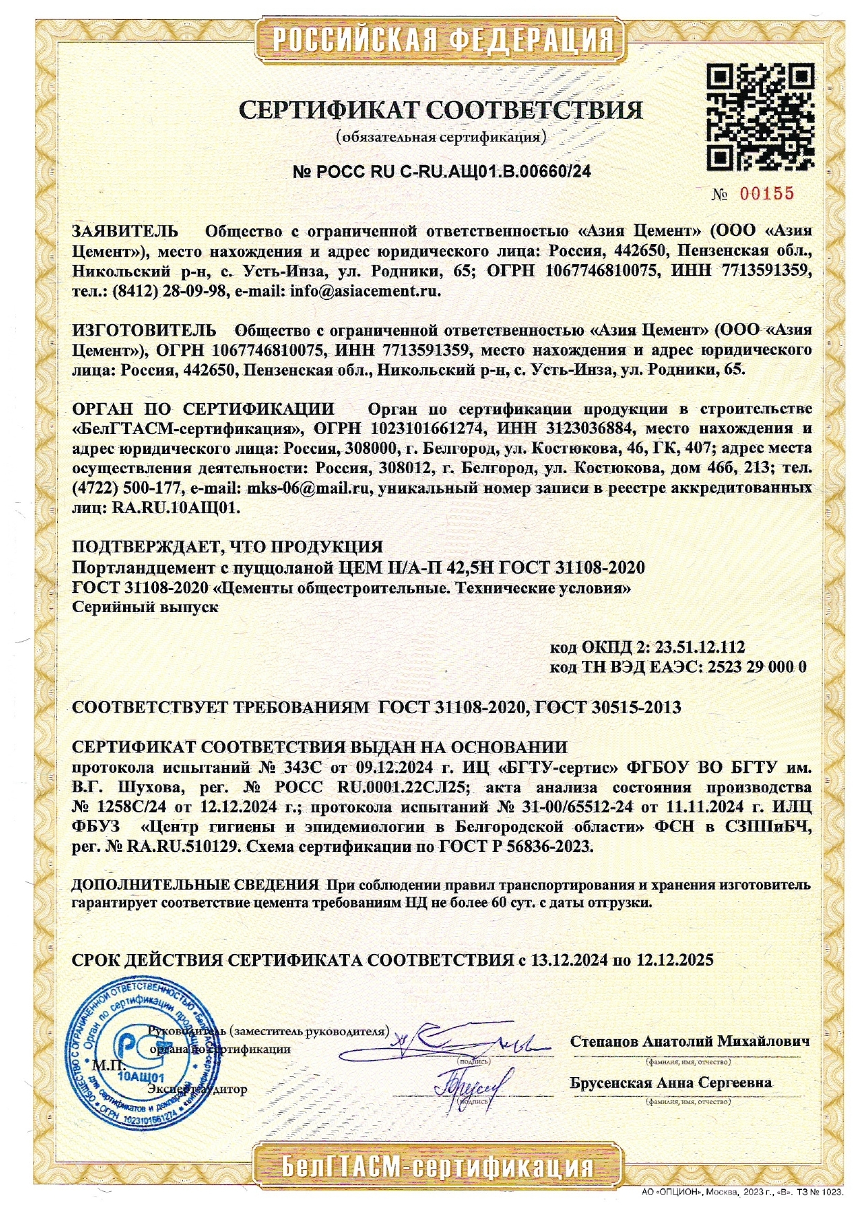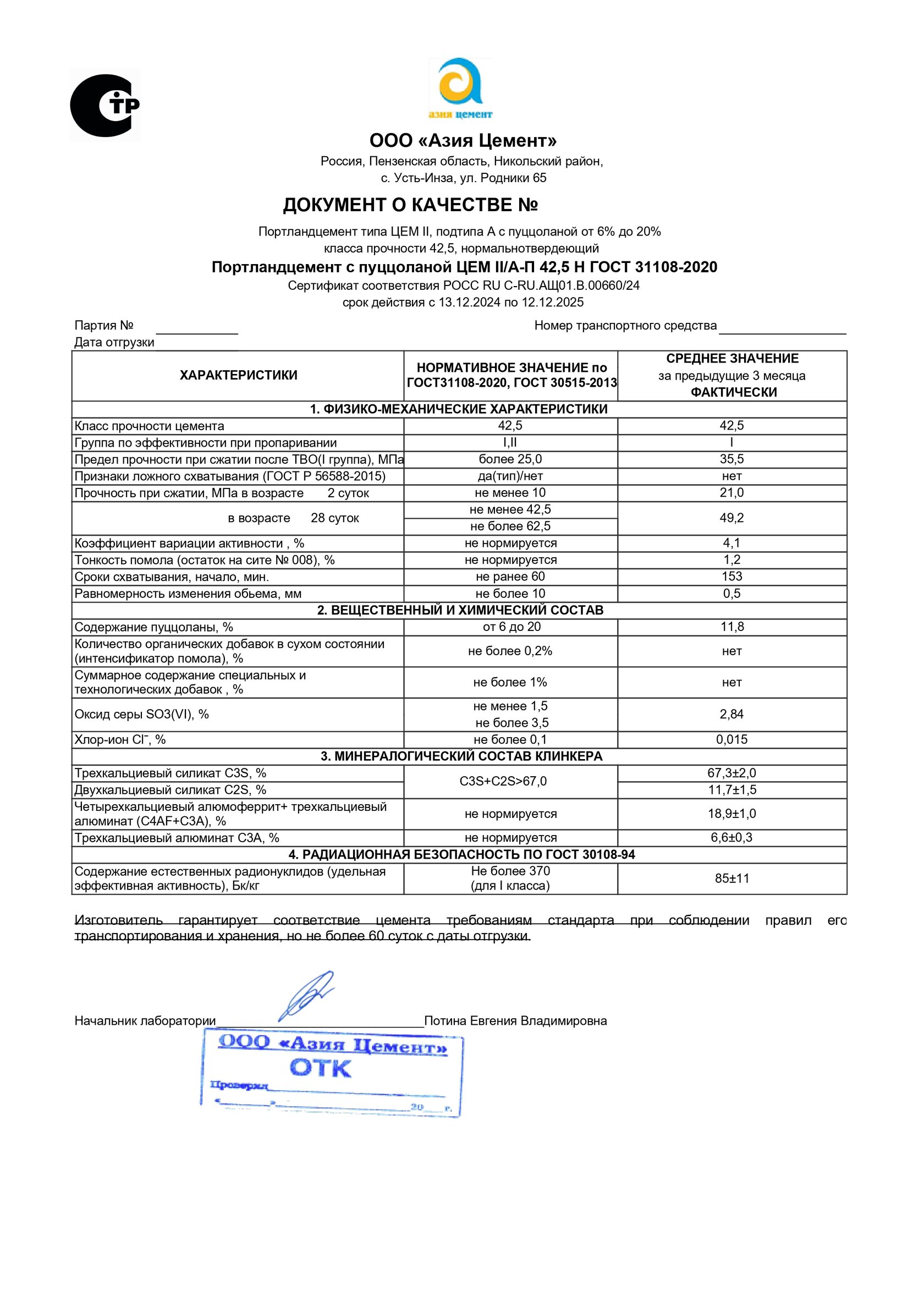 ЦЕМ II/А-П 42,5Н ГОСТ 31108-2020