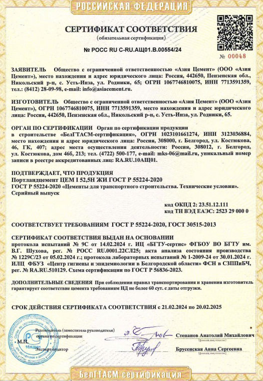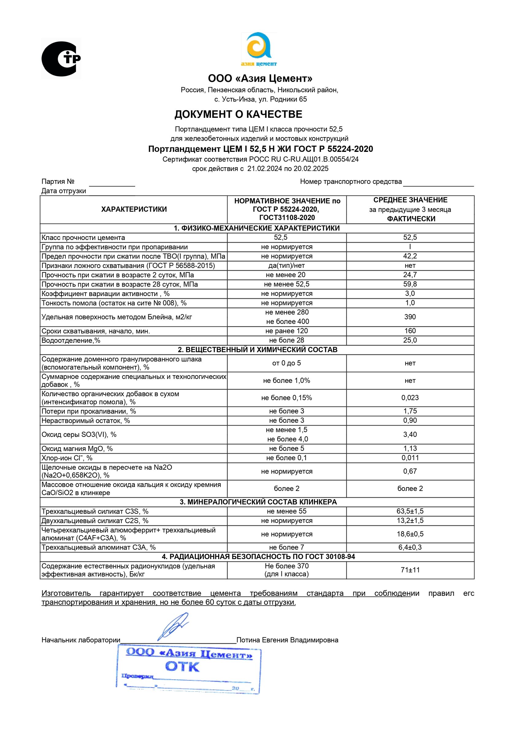 ЦЕМ I 52,5Н ЖИ ГОСТ 55224-2020